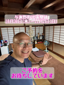 11月の与謝野町出張整体与謝野町出張整体の詳細 日程 2025年10月30日(木)31日(金)11月1日(土)2日(日)です 【ご予約枠空き状況】(10月26日午前10時現在) 10月30日(木)14時 10月31日(金 […]